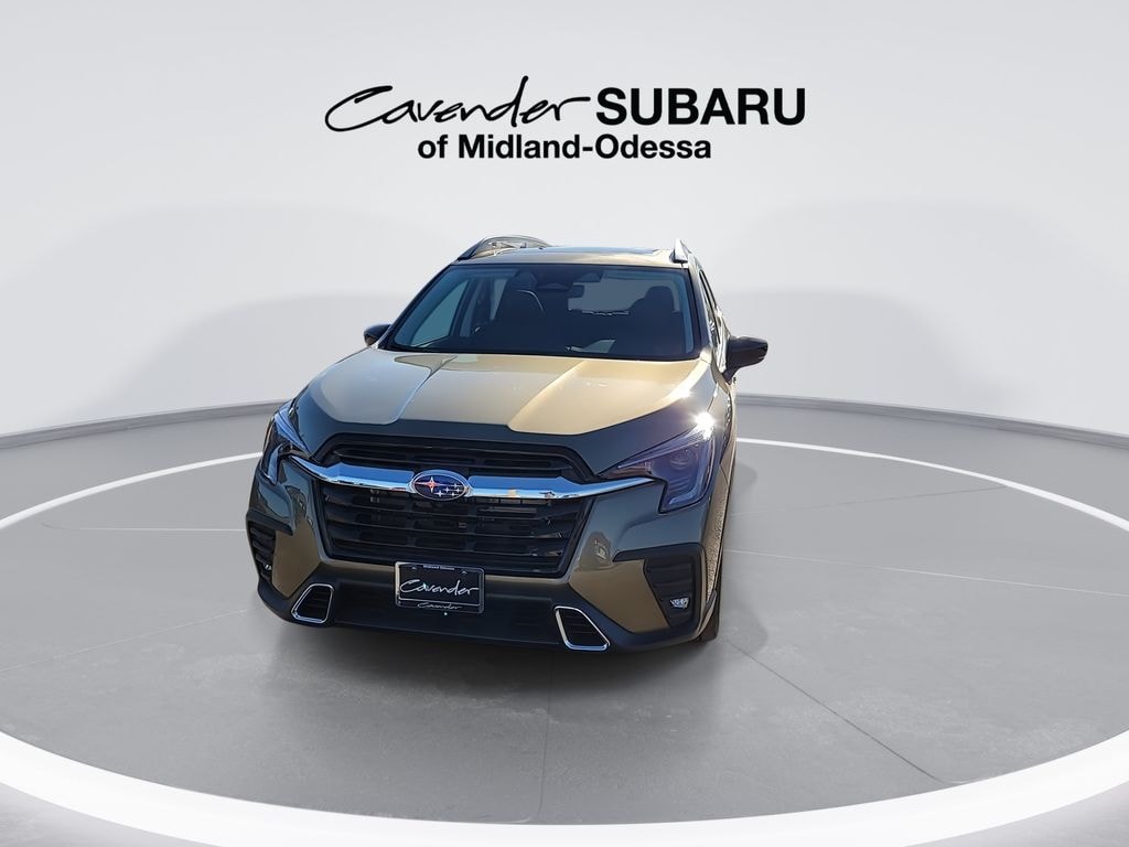 Features: Standard Model, 14 Speakers, 3rd row seats: bench, 4-Wheel Disc Brakes, ABS brakes, Air Conditioning, Alloy wheels, AM/FM radio: SiriusXM with 360L, Apple CarPlay & Android Auto, Auto High-beam Headlights, Auto-Dimming Exterior Mirror with Approach Light, Auto-dimming Rear-View mirror, Automatic temperature control, Brake assist, Bumpers: body-color, Cargo Tray, Compass, Delay-off headlights, Driver door bin, Driver vanity mirror, Dual front impact airbags, Dual front side impact airbags, Electronic Stability Control, Emergency communication system: MySubaru Companion (5-years free), Exterior Parking Camera Rear, Four wheel independent suspension, Front anti-roll bar, Front Bucket Seats, Front Center Armrest, Front Door Projector Lights, Front dual zone A/C, Front fog lights, Front reading lights, Fully automatic headlights, Garage door transmitter: HomeLink, harman/kardon® Speakers, Heated and Ventilated Front Bucket Seats, Heated door mirrors, Heated front seats, Heated rear seats, Heated steering wheel, HVAC memory, Illuminated entry, Knee airbag, Leather Shift Knob, Leather steering wheel, LED Cargo Area Lighting, LED Upgrade, Low tire pressure warning, Memory seat, Navigation system: MySubaru Navigator (1-year trial), Occupant sensing airbag, Outside temperature display, Overhead airbag, Overhead console, Panic alarm, Passenger door bin, Passenger vanity mirror, Perforated Nappa Leather-Trimmed Upholstery, Power door mirrors, Power driver seat, Power Liftgate, Power moonroof, Power passenger seat, Power steering, Power windows, Radio data system, Radio: Subaru 11.6" Multimedia System with Navigation, Rain sensing wipers, Rear air conditioning, Rear anti-roll bar, Rear reading lights, Rear window defroster, Rear window wiper, Reclining 3rd row seat, Remote keyless entry, Security system, Speed control, Speed-sensing steering, Split folding rear seat, Spoiler, Steering wheel mounted audio controls, Tachometer, Telescoping steering wheel, Tilt steering wheel, Traction control, Trip computer, Turn signal indicator mirrors, Variably intermittent wipers, Ventilated front seats, and Wheels: 20" x 7.5 J Dark Gray Alloy with Machine Finish.